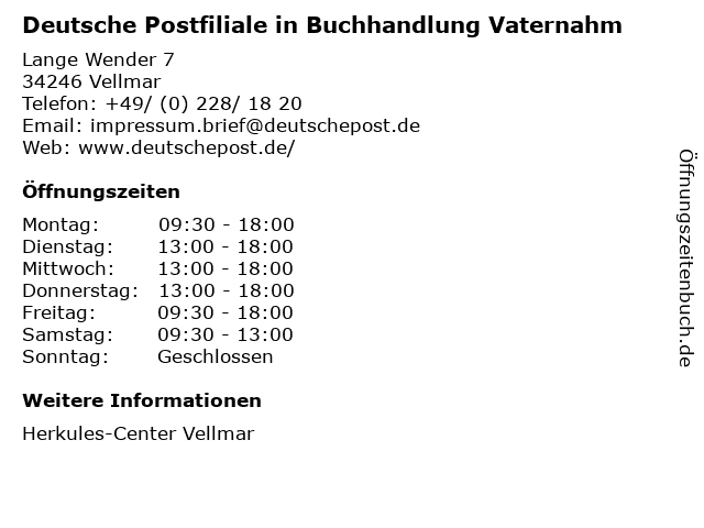 Branchen & Suchbegriffe zu Deutsche Postfiliale in Buchhandlung Vaternahm:bareinzahlungen, bargeldbezug, briefe, briefmarke, buchhandlung, deutsche, einzahlungen, empfangen, pakete, post, postfiliale, vaternahm, versenden, zahlungsverkehr |