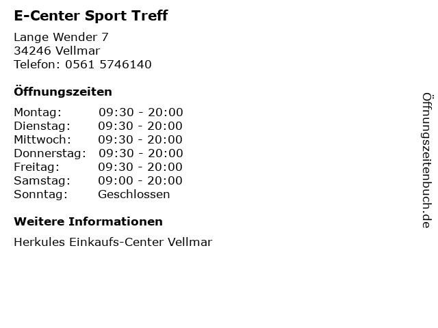 | Öffnungszeiten E-Center Sport Treff in Vellmar anzeigen | |