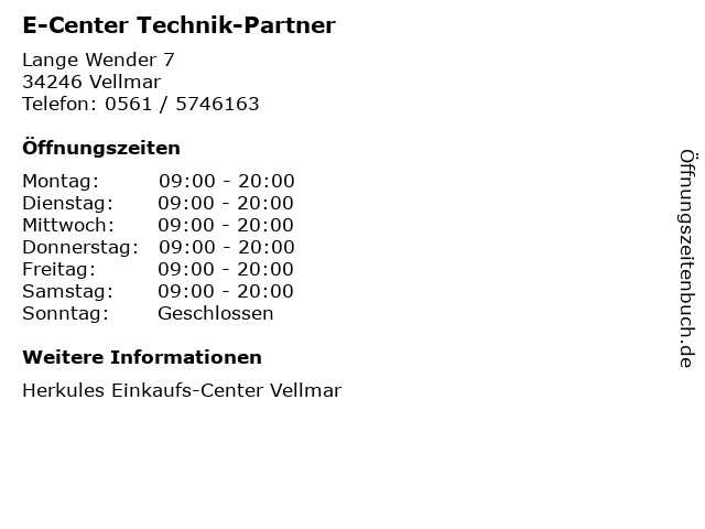 Öffnungszeiten E-Center Technik-Partner