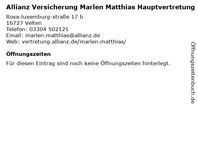 | Allianz Versicherung Marlen Matthias Hauptvertretung anrufen | |
