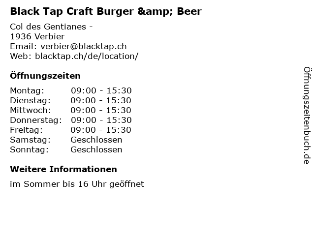 Öffnungszeiten Black Tap Craft Burger & Beer in Verbier anzeigen | |