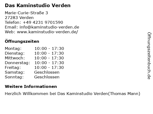 | Öffnungszeiten Das Kaminstudio Verden in Verden anzeigen | |