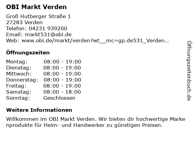 Öffnungszeiten OBI Markt Verden