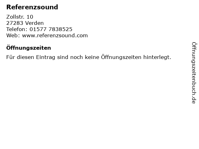 | Öffnungszeiten Referenzsound in Verden anzeigen | |