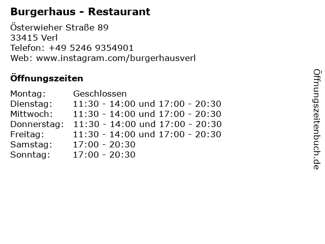 | Öffnungszeiten Burgerhaus - Restaurant in Verl anzeigen | |