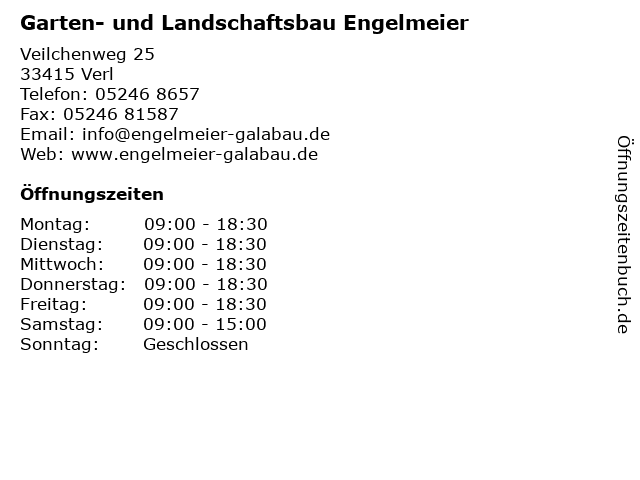 2 Rudolf Eschengerd Landschaftsbau (Entfernung: 6,44 km) Taubenweg 16 A, 33758 Schloß Holte-Stukenbrock 5 Sommerfeld GmbH, Erwin Garten- und Landschaftsbau (Entfernung: 11,30 km) Augustdorfer Str. 72, 33758 Schloß Holte-Stukenbrock 6 |