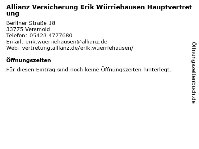 | Allianz Versicherung Erik Würriehausen Hauptvertretung anrufen | |