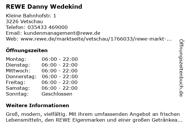 | Öffnungszeiten REWE Danny Wedekind in Vetschau anzeigen | |