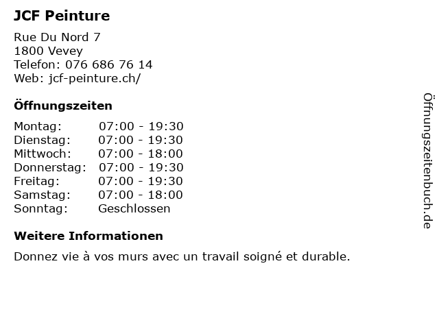 | Öffnungszeiten JCF Peinture in Vevey anzeigen | |