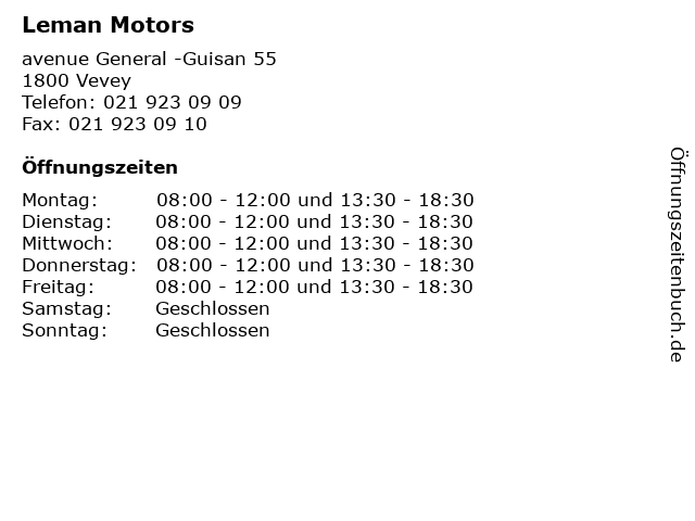 | Öffnungszeiten Leman Motors in Vevey anzeigen | |