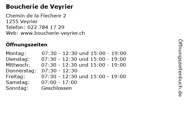 | Öffnungszeiten Boucherie de Veyrier in Veyrier anzeigen | |