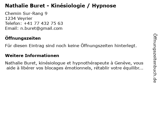 | Nathalie Buret - Kinésiologie / Hypnose anrufen | |