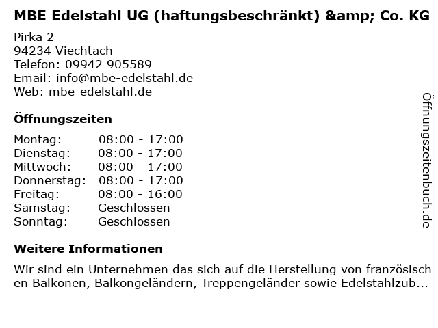 Branchen & Suchbegriffe zu MBE Edelstahl UG (haftungsbeschränkt) & Co. KG:edelstahl, haftungsbeschränkt, ingenieur, mbe, ug |