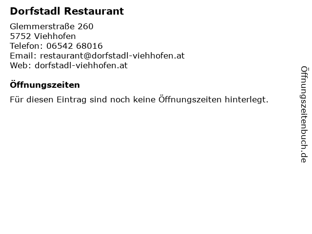 | Öffnungszeiten Dorfstadl Restaurant in Viehhofen anzeigen | |