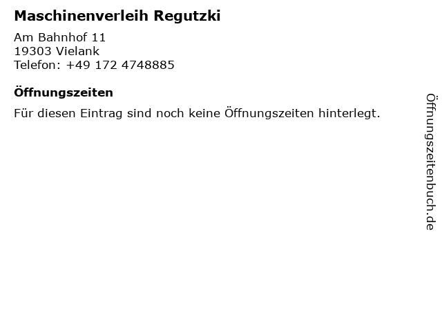 | Öffnungszeiten Maschinenverleih Regutzki in Vielank anzeigen | |