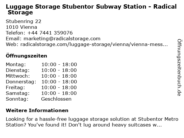 Branchen & Suchbegriffe zu Luggage Storage Stubentor Subway Station - Radical Storage:luggage, luggage storage, luggage storage near me, radical, station, storage, stubentor, subway |