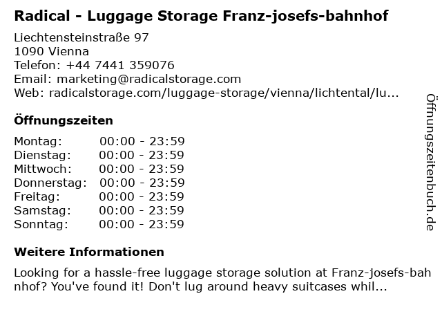 Branchen & Suchbegriffe zu Radical - Luggage Storage Franz-josefs-bahnhof:bahnhof, franz, josefs, luggage, luggage storage, luggage storage near me, radical, storage |