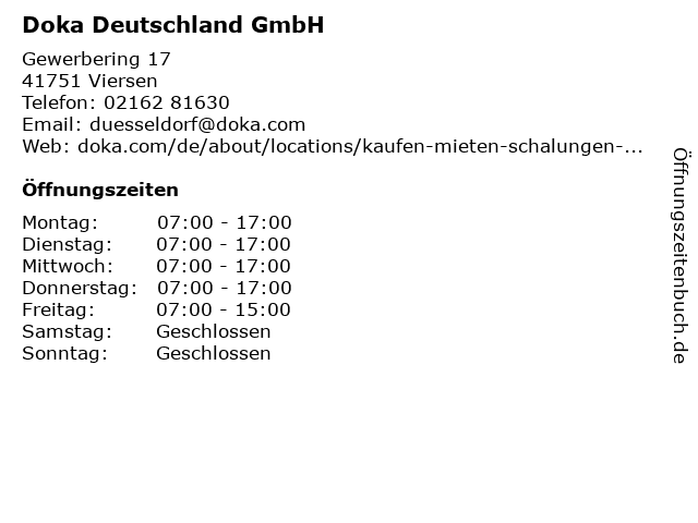 | Öffnungszeiten Doka Deutschland GmbH in Viersen anzeigen | |