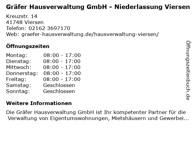 Branchen & Suchbegriffe zu Gräfer Hausverwaltung GmbH - Niederlassung Viersen:gräfer, hausverwaltung, niederlassung |