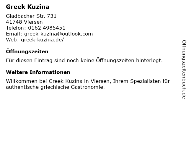 | Öffnungszeiten Greek Kuzina in Viersen anzeigen | |