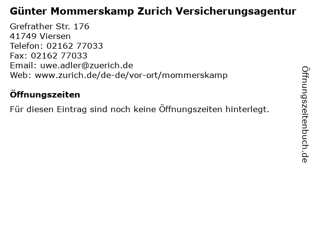 | Günter Mommerskamp Zurich Versicherungsagentur anrufen | |