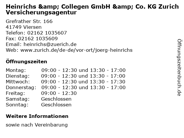 Branchen & Suchbegriffe zu Heinrichs & Collegen GmbH & Co. KG Zurich Versicherungsagentur:collegen, generalagentur, heinrichs, herold, jörg, versicherung, versicherungen, versicherungsagentur, versicherungsagenturen, zurich, zürich |