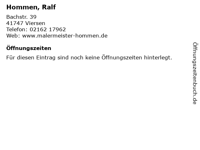 | Öffnungszeiten Hommen, Ralf in Viersen anzeigen | |