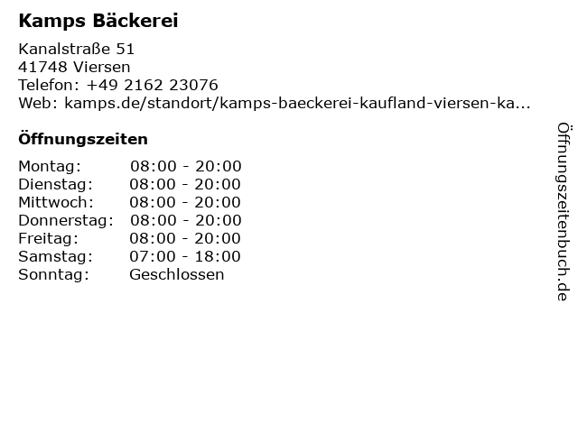 | Öffnungszeiten Kamps Bäckerei in Viersen anzeigen | |