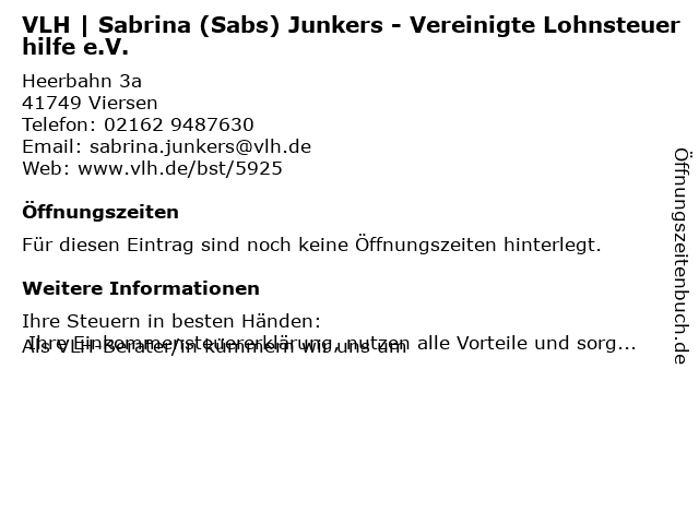 | VLH | Sabrina (Sabs) Junkers - Vereinigte Lohnsteuerhilfe e.V. anrufen | |