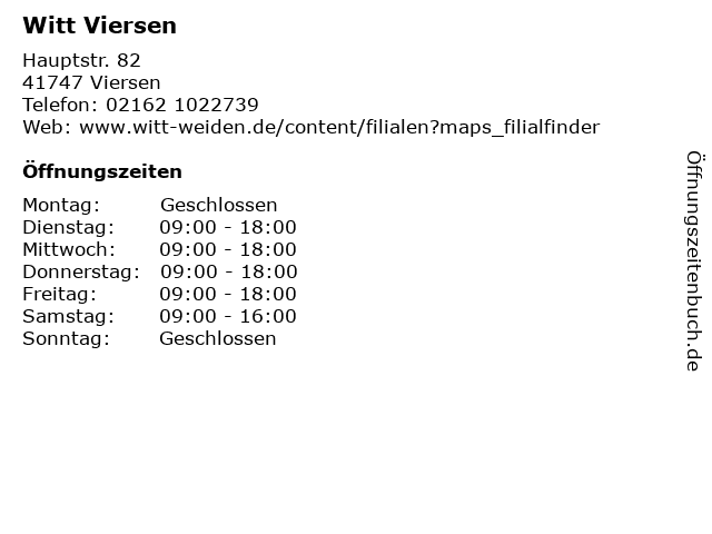 | Öffnungszeiten Witt Viersen in Viersen anzeigen | |