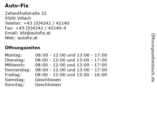 | Öffnungszeiten Auto-Fix in Villach anzeigen | |