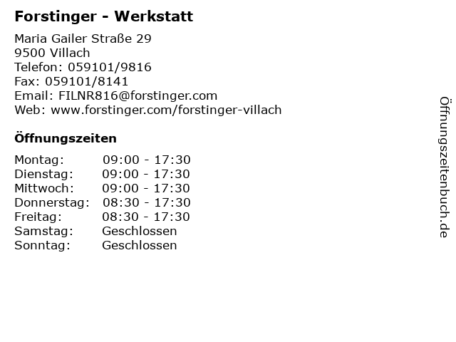 | Öffnungszeiten Forstinger - Werkstatt in Villach anzeigen | |