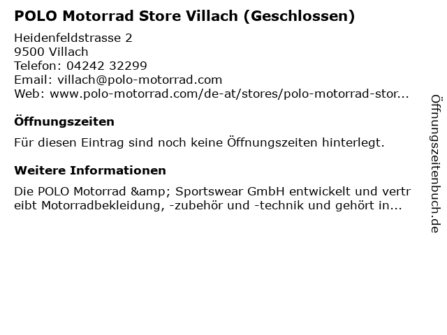 | POLO Motorrad Store Villach (Geschlossen) anrufen | |