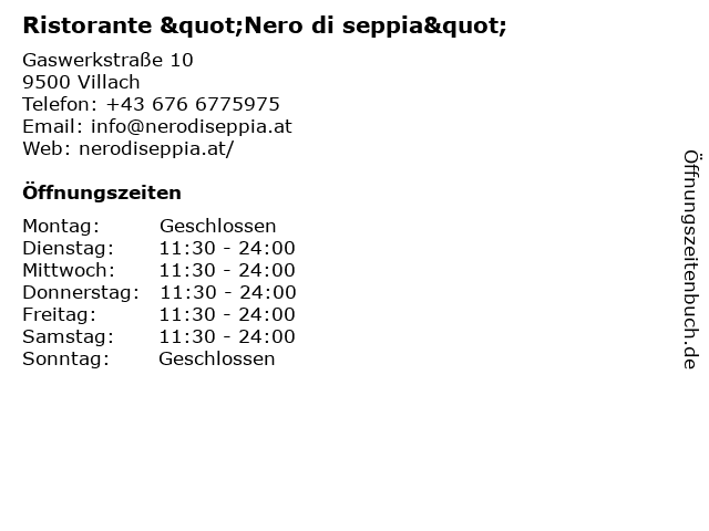 | Öffnungszeiten Ristorante "Nero di seppia" in Villach anzeigen | |