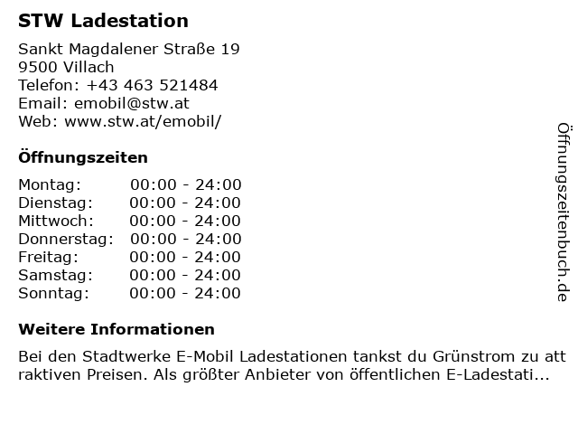 Öffnungszeiten STW Ladestation in Villach anzeigen