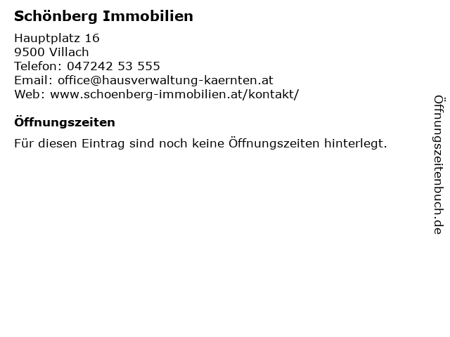 | Öffnungszeiten Schönberg Immobilien in Villach anzeigen | |