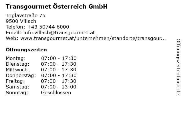 | Öffnungszeiten Transgourmet Österreich GmbH in Villach anzeigen | |