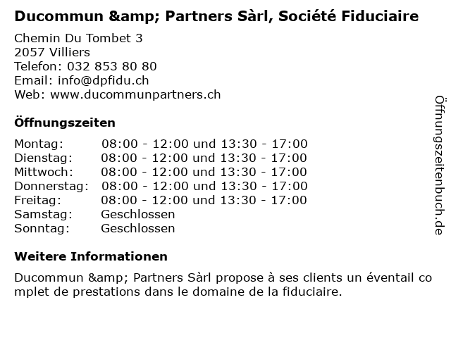 Branchen & Suchbegriffe zu Ducommun & Partners Sàrl, Société Fiduciaire:ducommun, fiduciaire, partners, schuldeneintreibungsdienste, société, sàrl, unternehmensberatung |