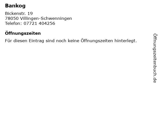 | Öffnungszeiten Bankog in Villingen-Schwenningen anzeigen | |