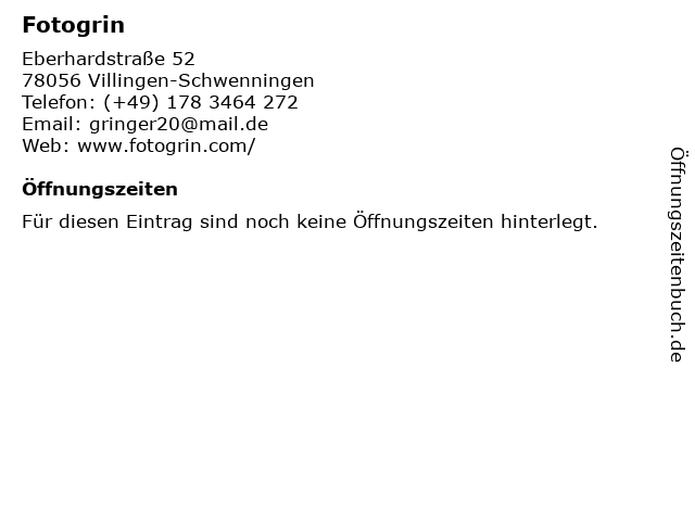 | Öffnungszeiten Fotogrin in Villingen-Schwenningen anzeigen | |