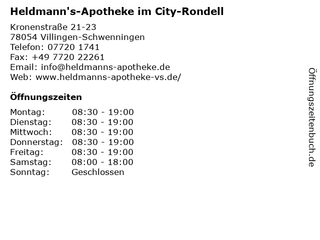 Branchen & Suchbegriffe zu Heldmann's-Apotheke im City-Rondell:apotheke, arzneimittel, center, city, heldmann's, medikamente, rondell, shopping |