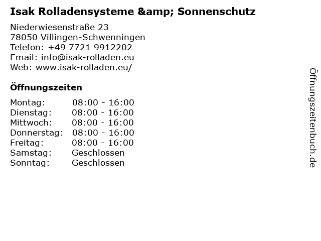 1 Dr.med. Volker Isak Facharzt für Allgemeinmedizin (Entfernung: 13,73 km) Sommerauer Str. 51a, 78112 Sankt Georgen 3 Lang Rollladenbau und Sonnenschutztechnik e.k. (Entfernung: 0,07 km) Niederwiesenstrasse 28/1, 78050 Villingen-Schwenningen 6 |