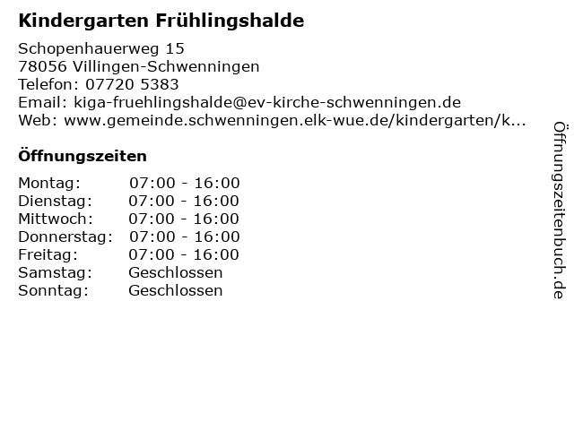 6 Kindergarten Helene-Mauthe (Tagesstätte) (Entfernung: 1,86 km) Stuttgarter Straße 76, 78054 Villingen-Schwenningen |