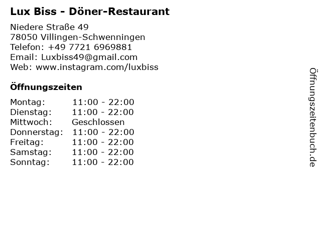 Branchen & Suchbegriffe zu Lux Biss - Döner-Restaurant:biss, döner, fladenbrot, imbiss, kebab, lux, restaurant |