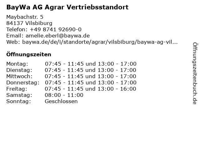 Öffnungszeiten BayWa AG Agrar Vertriebsstandort