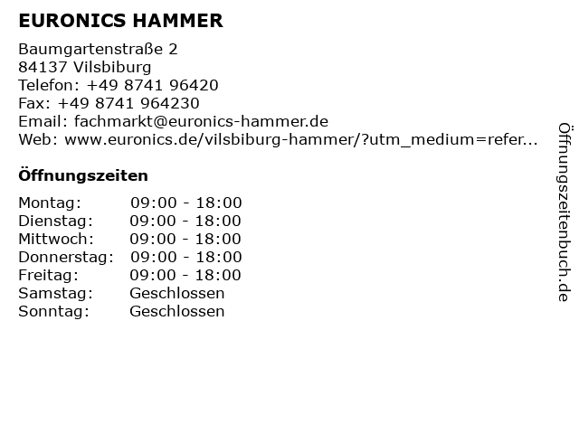 | Öffnungszeiten EURONICS HAMMER in Vilsbiburg anzeigen | |