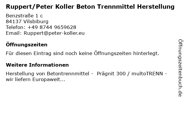 | Ruppert/Peter Koller Beton Trennmittel Herstellung anrufen | |