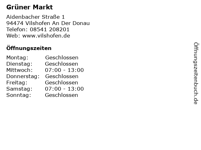 | Öffnungszeiten Grüner Markt in Vilshofen An Der Donau anzeigen | |