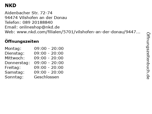 | Öffnungszeiten NKD in Vilshofen an der Donau anzeigen | |