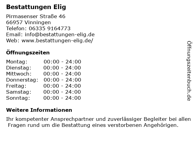 | Öffnungszeiten Bestattungen Elig in Vinningen anzeigen | |